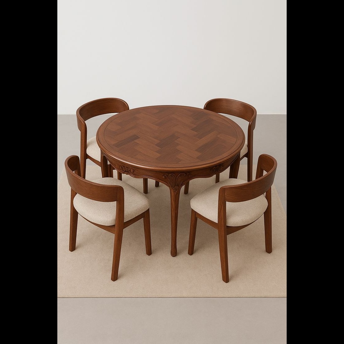 Crafted by Divine Oak, this elegant dining set is made from premium teak wood, ensuring durability and long-lasting strength. The table features a finely detailed design with a smooth melamine polish, giving it a rich and sophisticated finish.